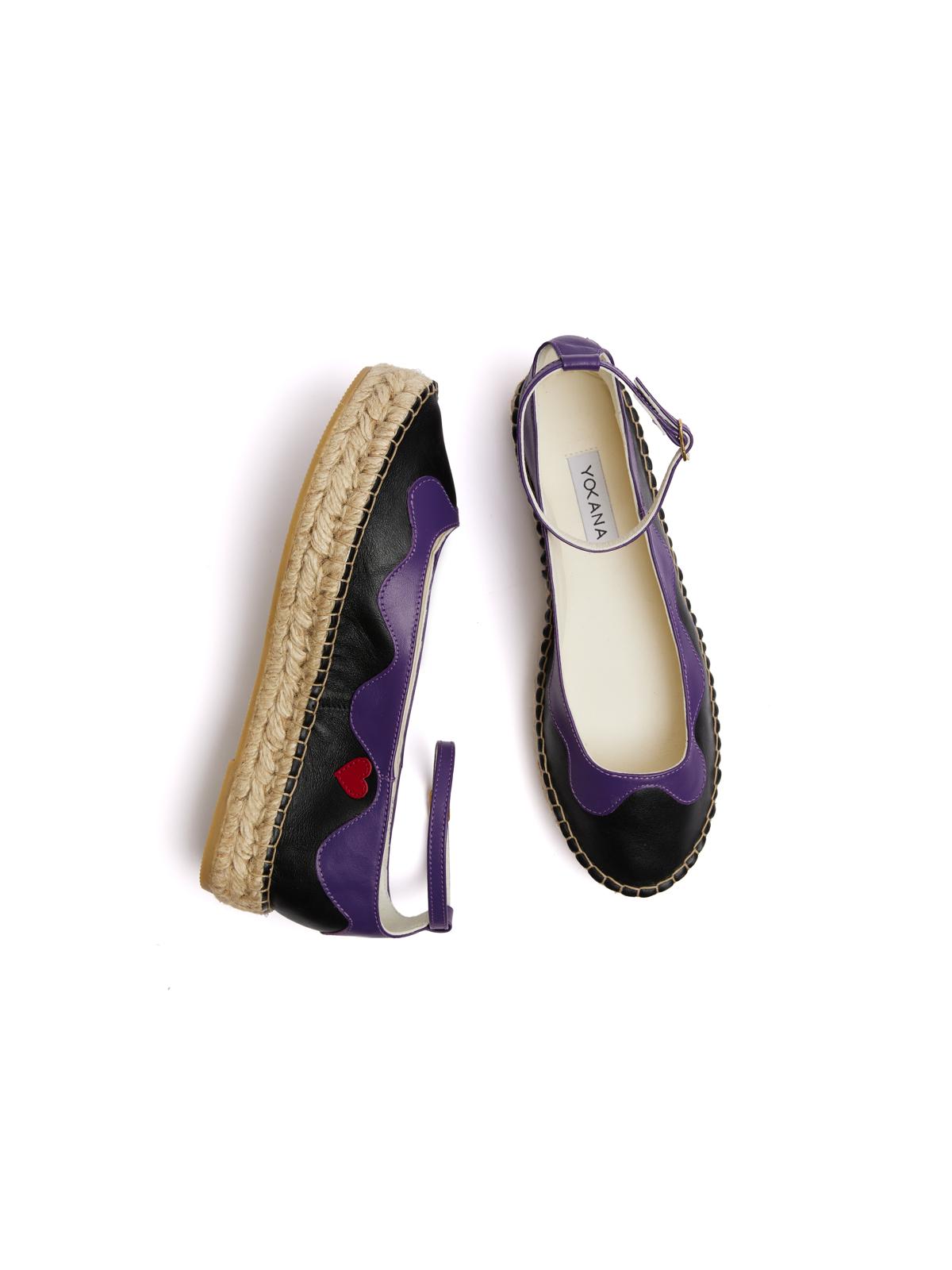 Burst of Love Espadrilles – Black and Purple nappa leather